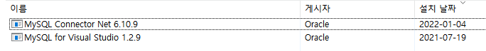 2. MySQL Connector와 MySQL for Visual Studio 설치파일 삭제